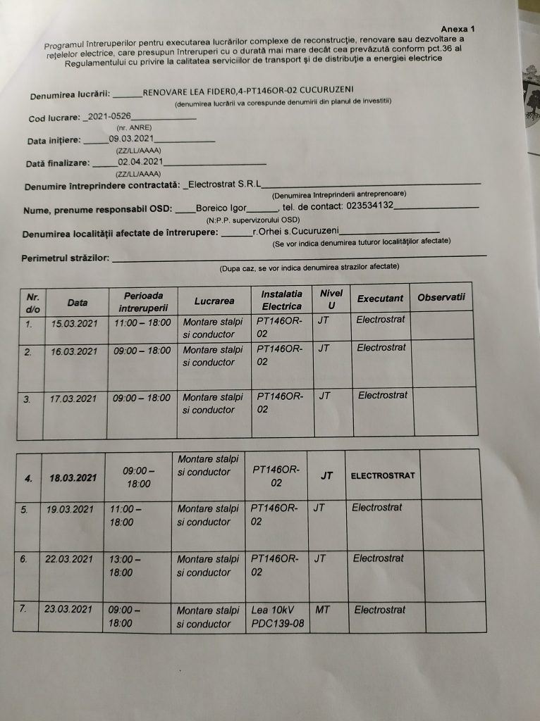 Dragi locuitori ai comunei Cucuruzeni ❤️ în legătură cu lucrările preconizate de către agentul economic, Premier Energy, vor fi deconectări temporare de energie electrică.