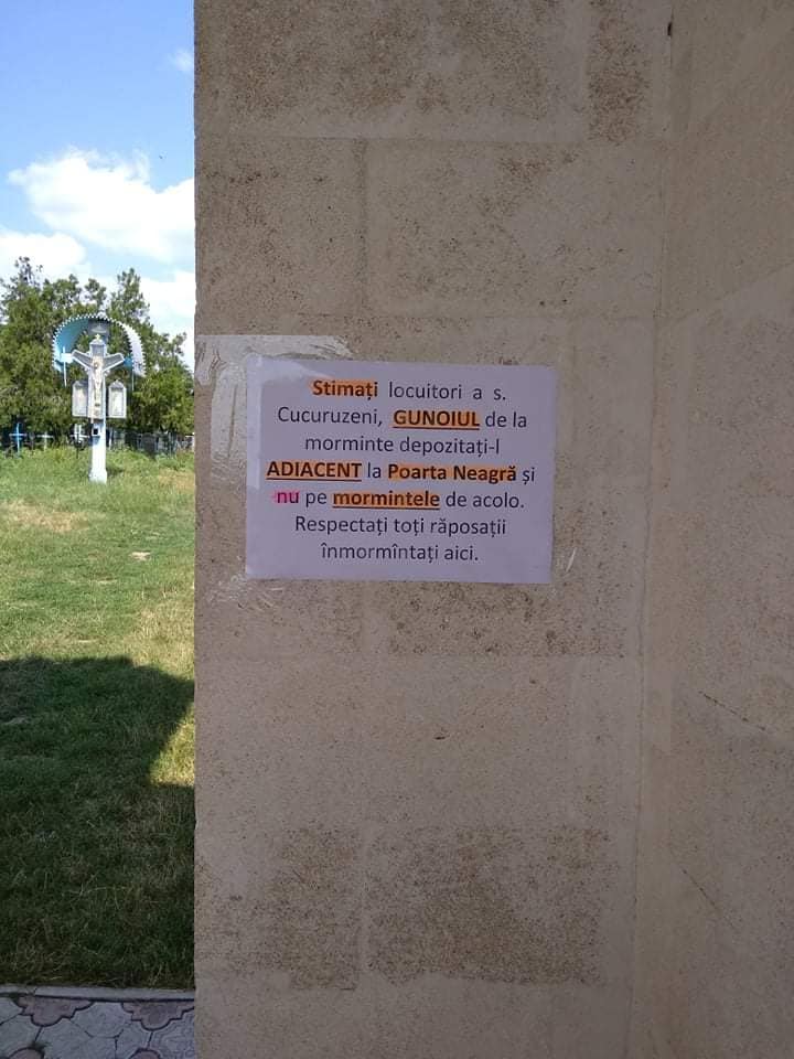 , în Cimitirul din satu Cucuruzeni au fost executate lucrări de amenajare (evacuarea gunoiului). La fel au fost amplasate indicatoare unde poate fi amplasat gunoiul. Va rugăm nu aruncați gunoiul pe morminte.